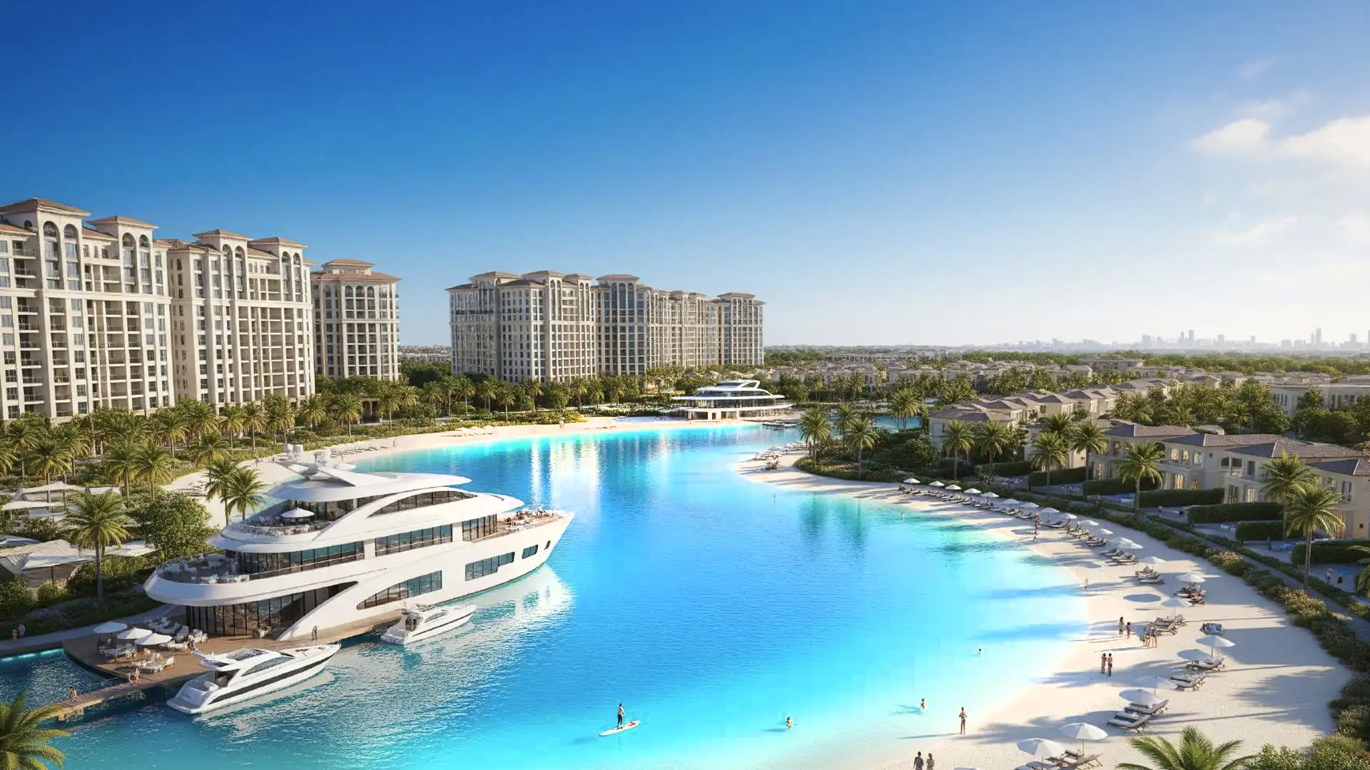 Lagoon-centric masterplan where all amenities radiate from the water — maximizing visual and operational value.